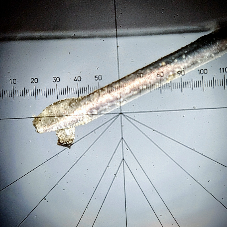 毎度お馴染みの顕微鏡で覗いた針先ですが、汚いですねぇコレは。そもそも、レコード盤の溝をダイヤ等の針先で直になぞって音を出す接触型機構のアナログ再生には針先の汚れは付き物であって、どれだけ盤面を綺麗に仕上げた所で、テーブル上で一定の速度で回転する限りは自らが大気中に漂う種々の不純物を引き寄せます。また盤面を手先で扱う限りは、それに付帯する油脂分他の人的要因の汚れも伴います。