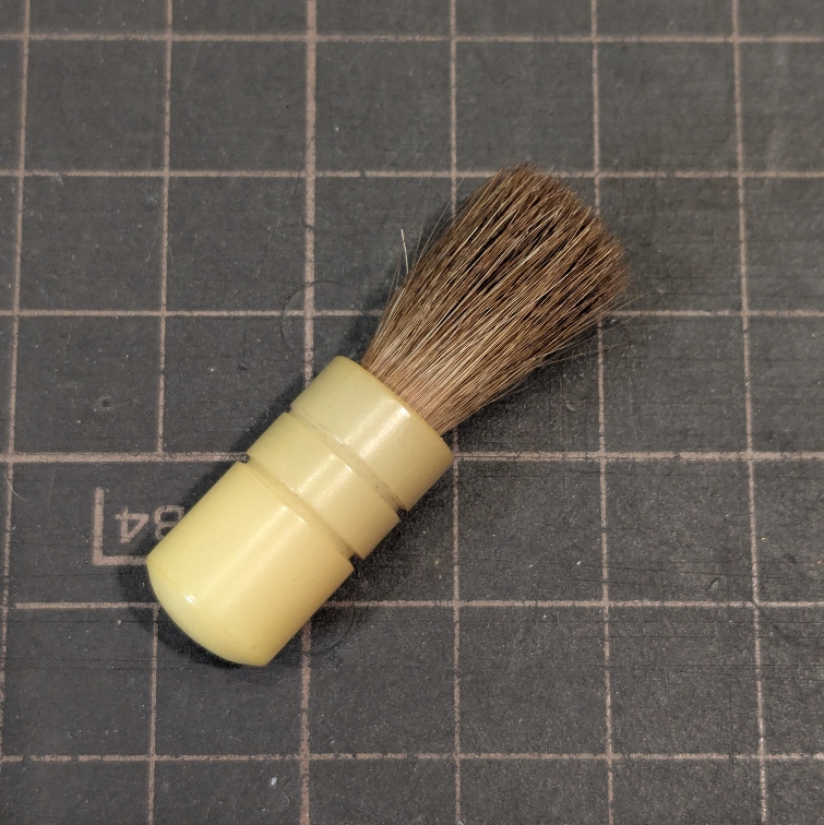 因みに、付属品レベルで見掛ける機会も多い、写真のこの毛先が長く柔らかいタイプのブラシですが、冒頭の写真の様な汚れ状態に対してはほぼ無力で且つ、ブラシで針先を撫でる事が許されているのは基本的に盤の回転方向と同一方向のみなので、その反対側に対しては尚更役に立ちません。存在自体が全く役に立たない訳では無いのですが、埃払い程度にご理解下さい。尚、私自身は針先清掃の際の最終仕上げのカンチレバーの軸に絡んだり付帯した粒子や毛埃の除去に併用しています。