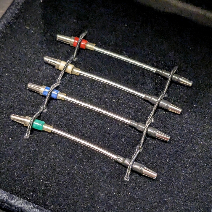 それら全てを総合して、針先は普段は粘着タイプを用い、非常手段として液モノを使う積りで結局は両方手元に揃えておかれる事をお勧め致します。その上で、針先の状態の観察や手元に自信が持てない方は、無理して壊したり折ったりする前にそれを購入したお店や扱っているお店に相談下さいませ。その上で彼らが販売する以上の責を果たしきれない様子だった時は遠慮なく当店までご相談下さい。店頭に直に持ち込まれた方は顕微鏡を覗いて自らの針先とそのメンテ具合を体感出来ますし、遠方の方には写真を撮って送ります。